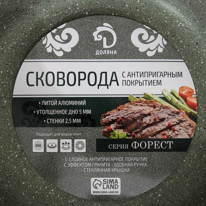 Сковорода Доляна «Форест» d=28 см стеклянная крышка съёмная ручка антипригарное покрытие цвет зелёный интересное: