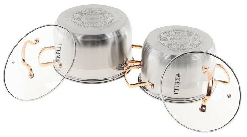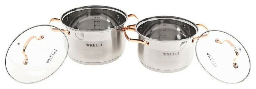 Набор кастрюль Kelli KL-4214 6 пр. серебристый/золотистый