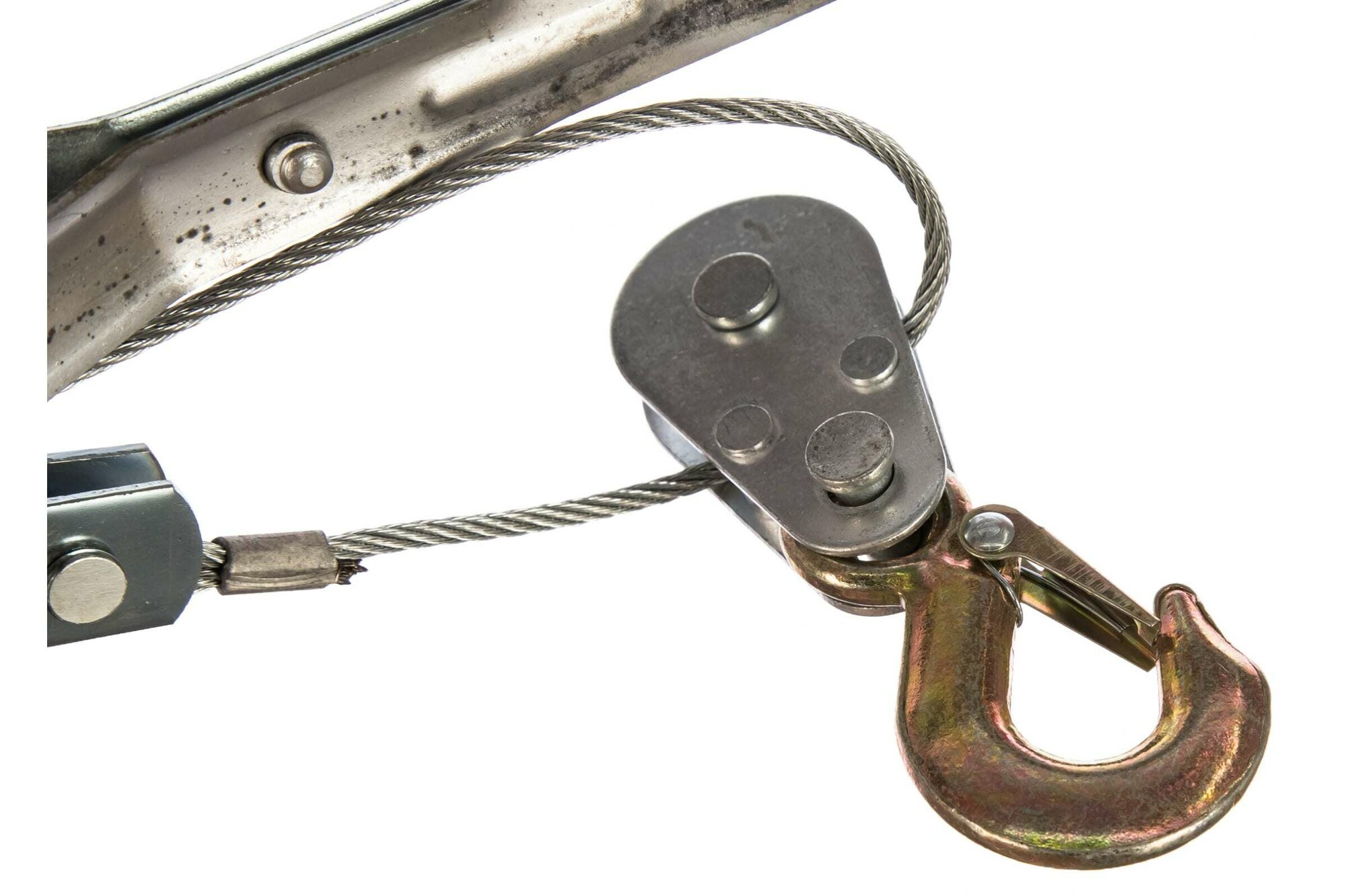 | Минусы: | Нет возможности разблокировки храповика под нагрузкой. Короткий трос (рабочий ход лебедки около 1 метра). |