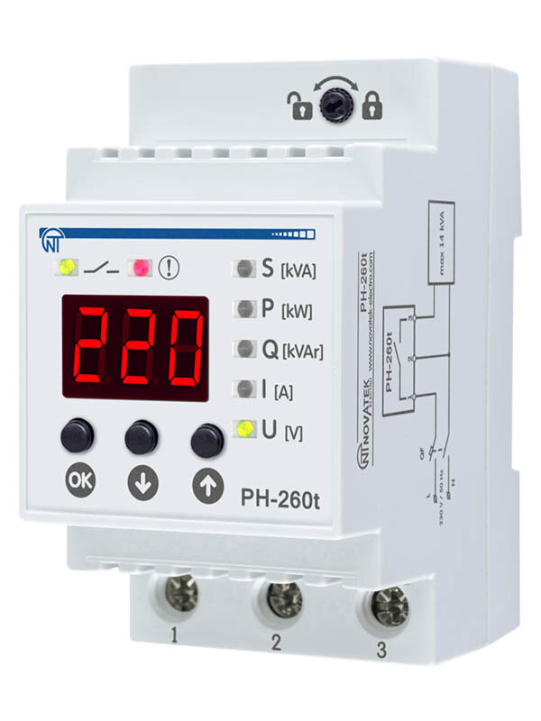 Реле контроля однофазное напряжения РН-260Т 63А на DIN-рейку 3425600260т Новатек-Электро