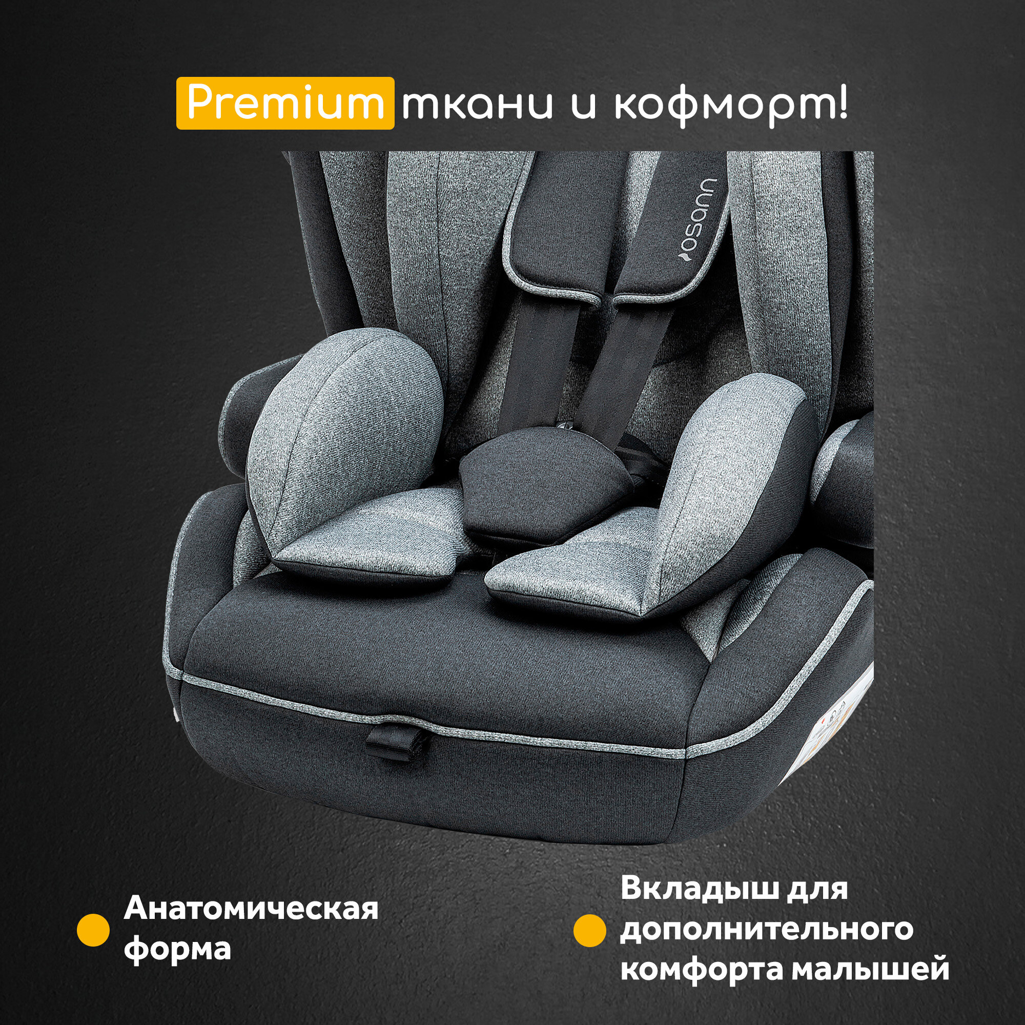 | В комплекте | анатомическая подушка, мягкие накладки на внутренние ремни, съемный чехол |