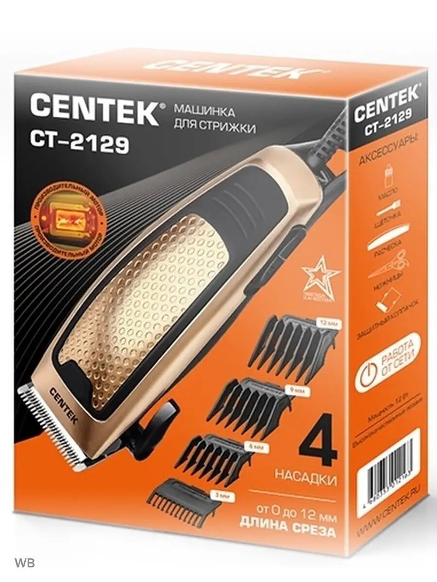Машинка для стрижки Centek CT-2129 (чер/зол) срез 0...12мм, производительный мотор, шнур 1.8м