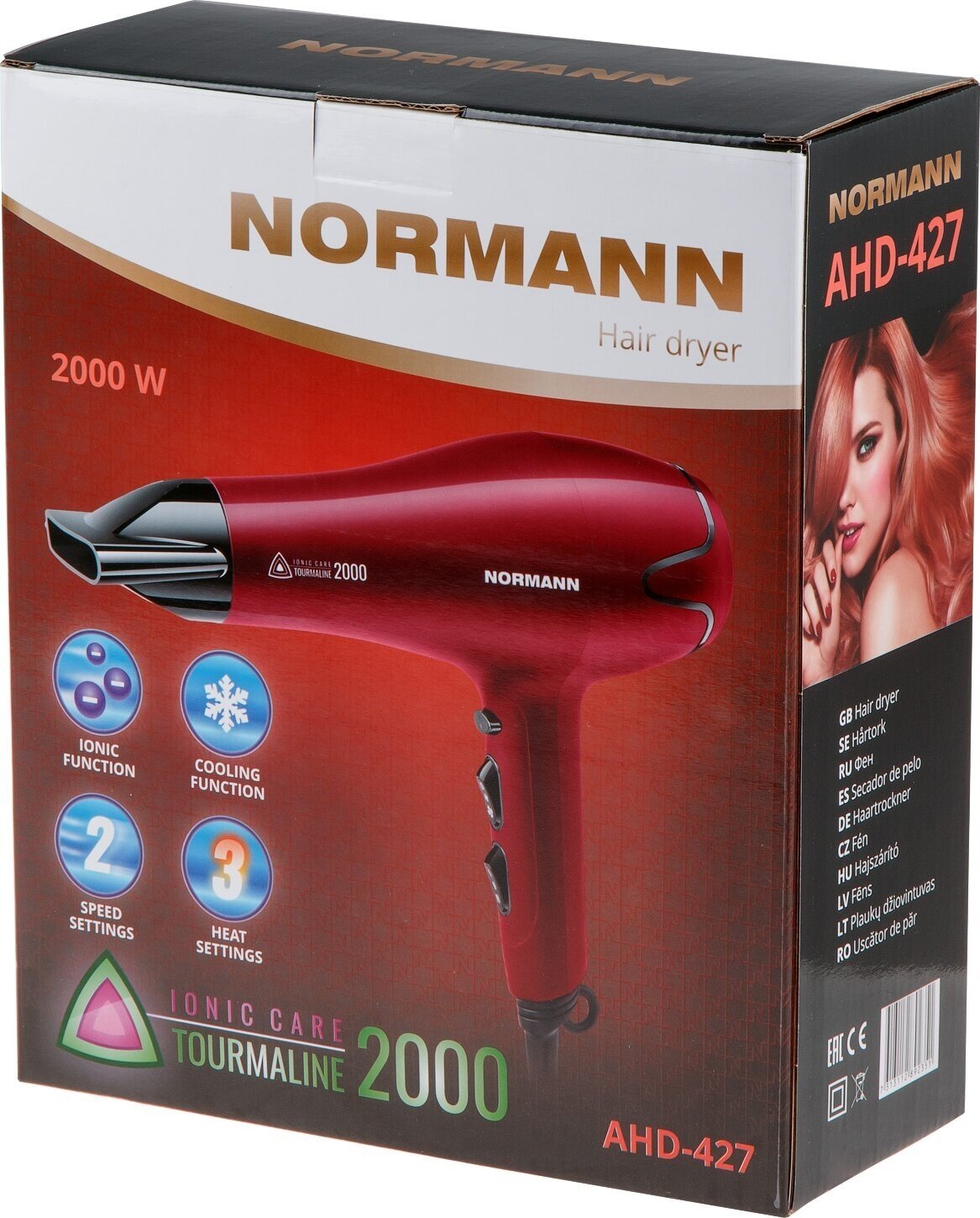 Фен NORMANN AHD-427 (2000 Вт; раздельные регулировки; холод.обд.; ионизация) (AHD-427)