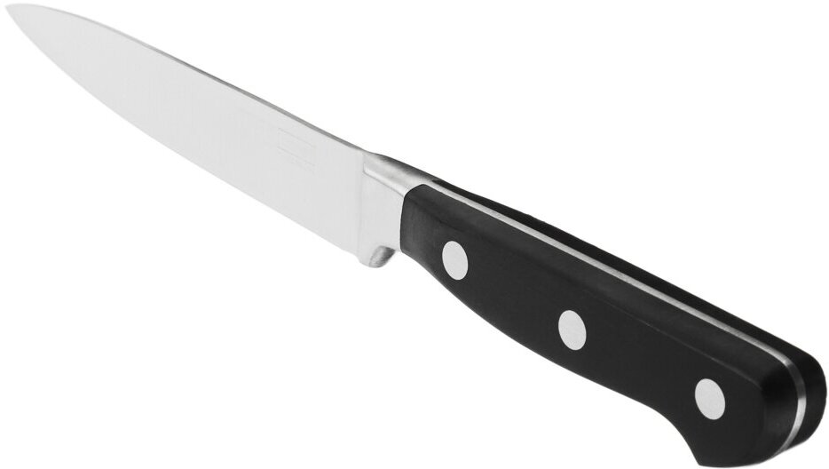 Нож кухонный SATOSHI Старк кованый 12,5 см, широкое лезвие, черная ручка