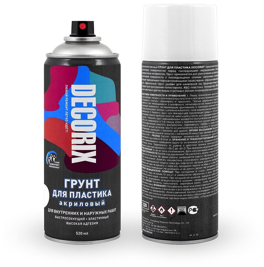 Decorix Аэрозольная акриловая грунтовка для пластика (матовый, белый, 520мл)