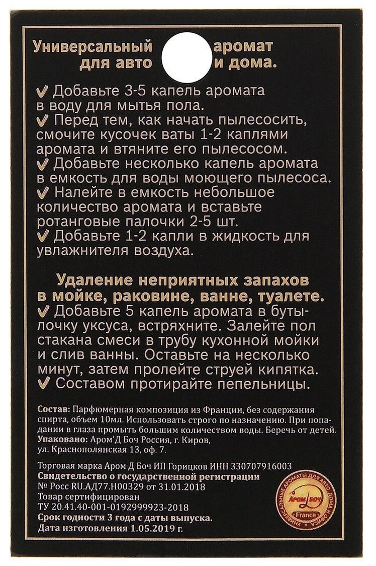 Заправка ароматизатора для автомобиля, парфюмерное масло, дозаправка Аром Д'Боч, 10 мл, Черный опиум