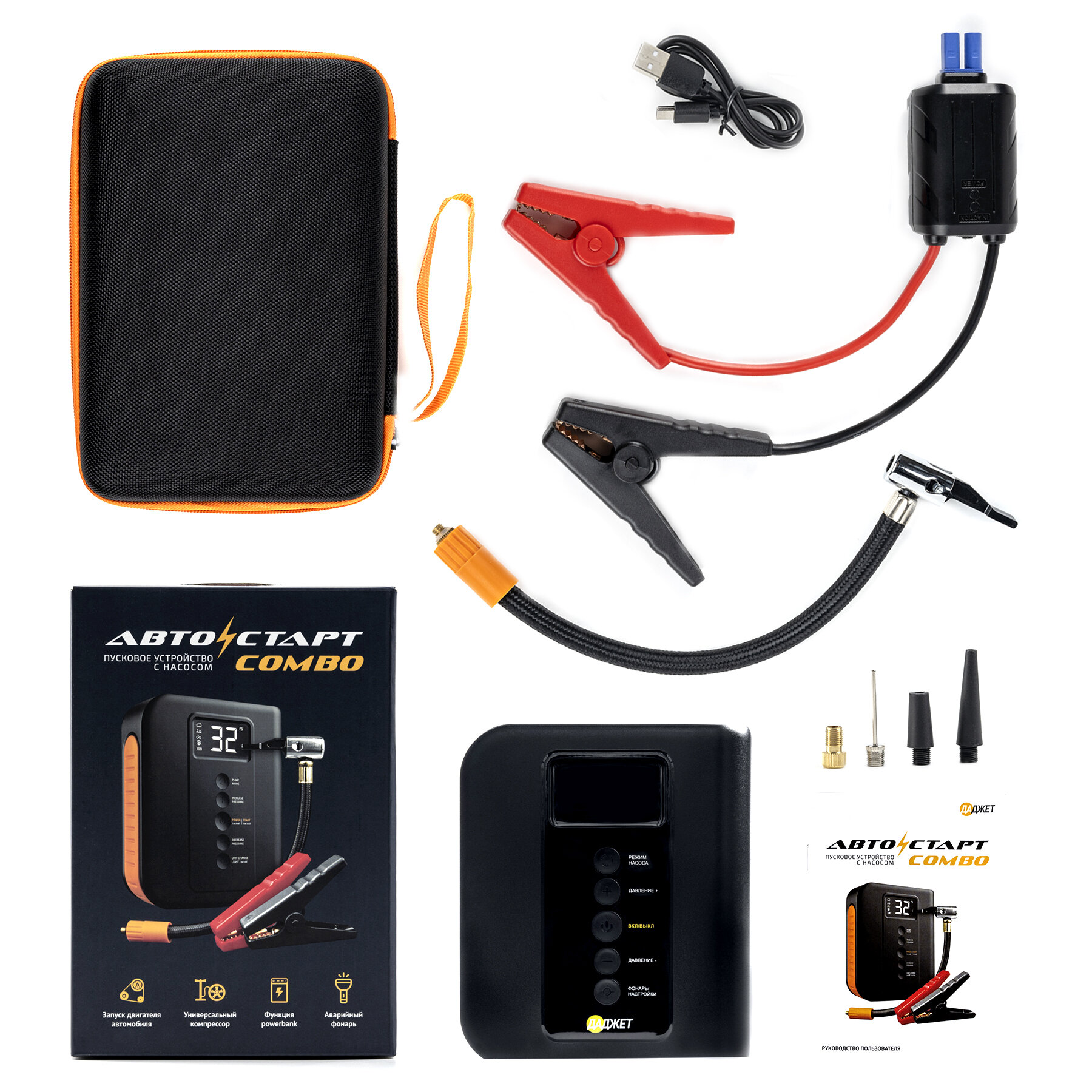 Пуско-зарядное устройство с компрессором для колес Автостарт Сombo, Пусковое устройство для автомобиля, автомобильный компрессор, 8 800 мАч интересное: