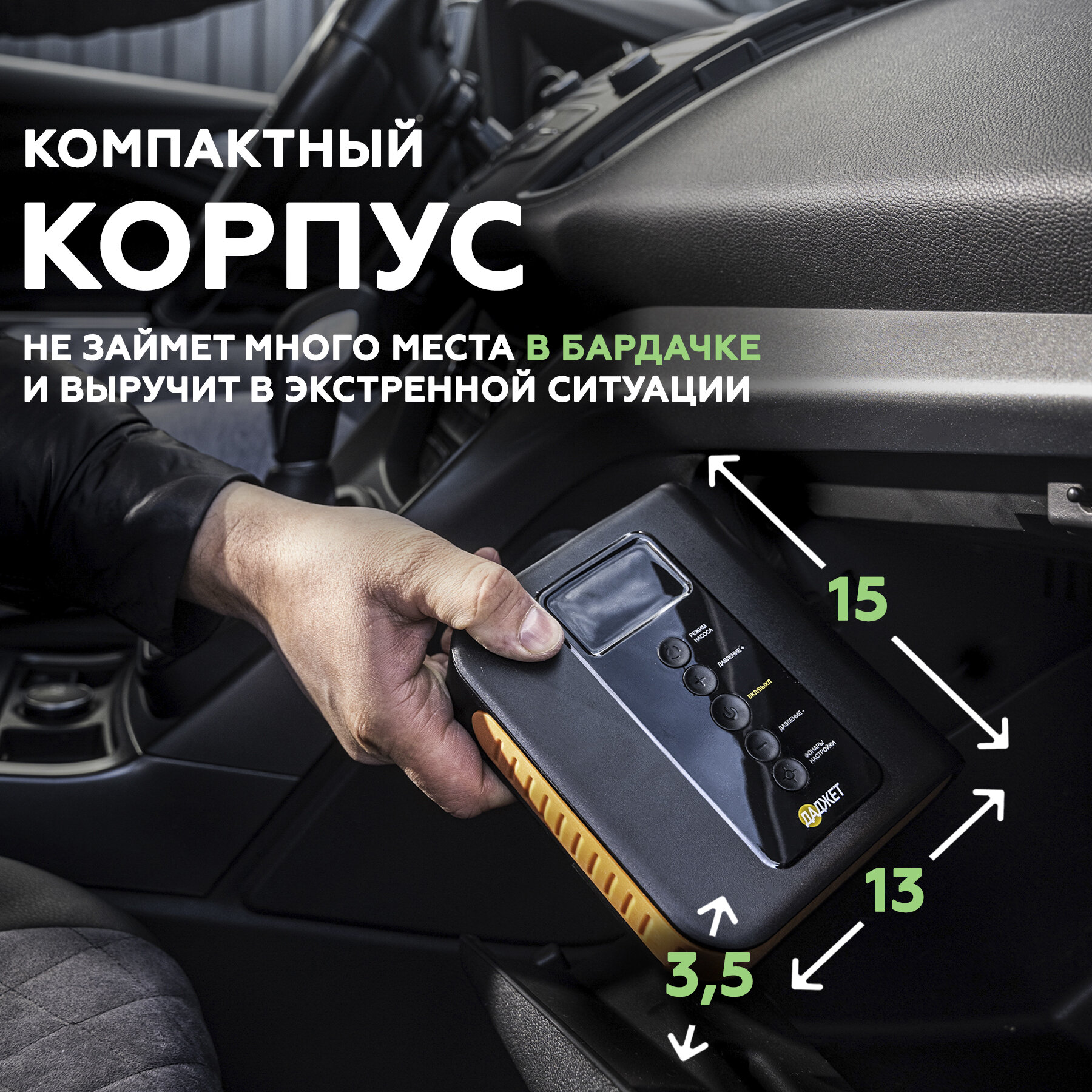 | Функции | встроенный фонарь / встроенный компрессор / зарядка мобильных устройств (Powerbank) |