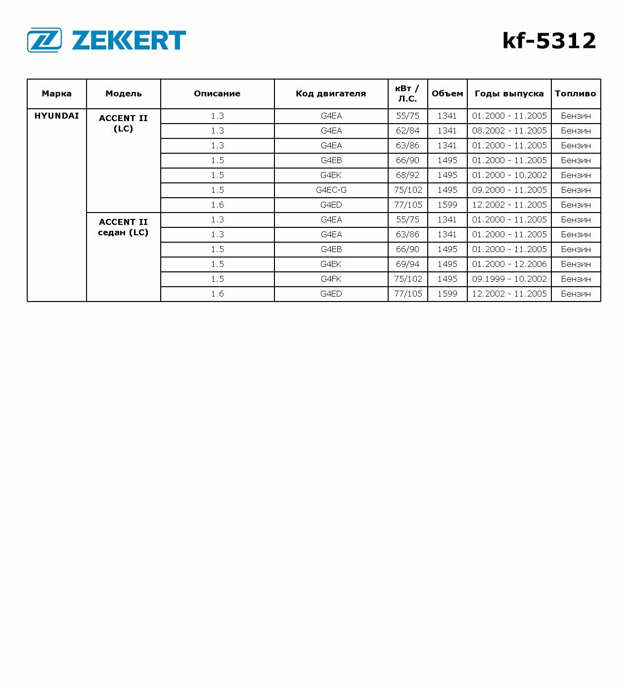 Купить ZEKKERT KF-5312 Фильтр топл. Hyundai Accent II 99- (Бензин)