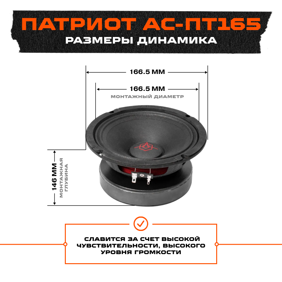 Среднечастотный динамик Урал Патриот АС-ПТ165 Гром 1 шт