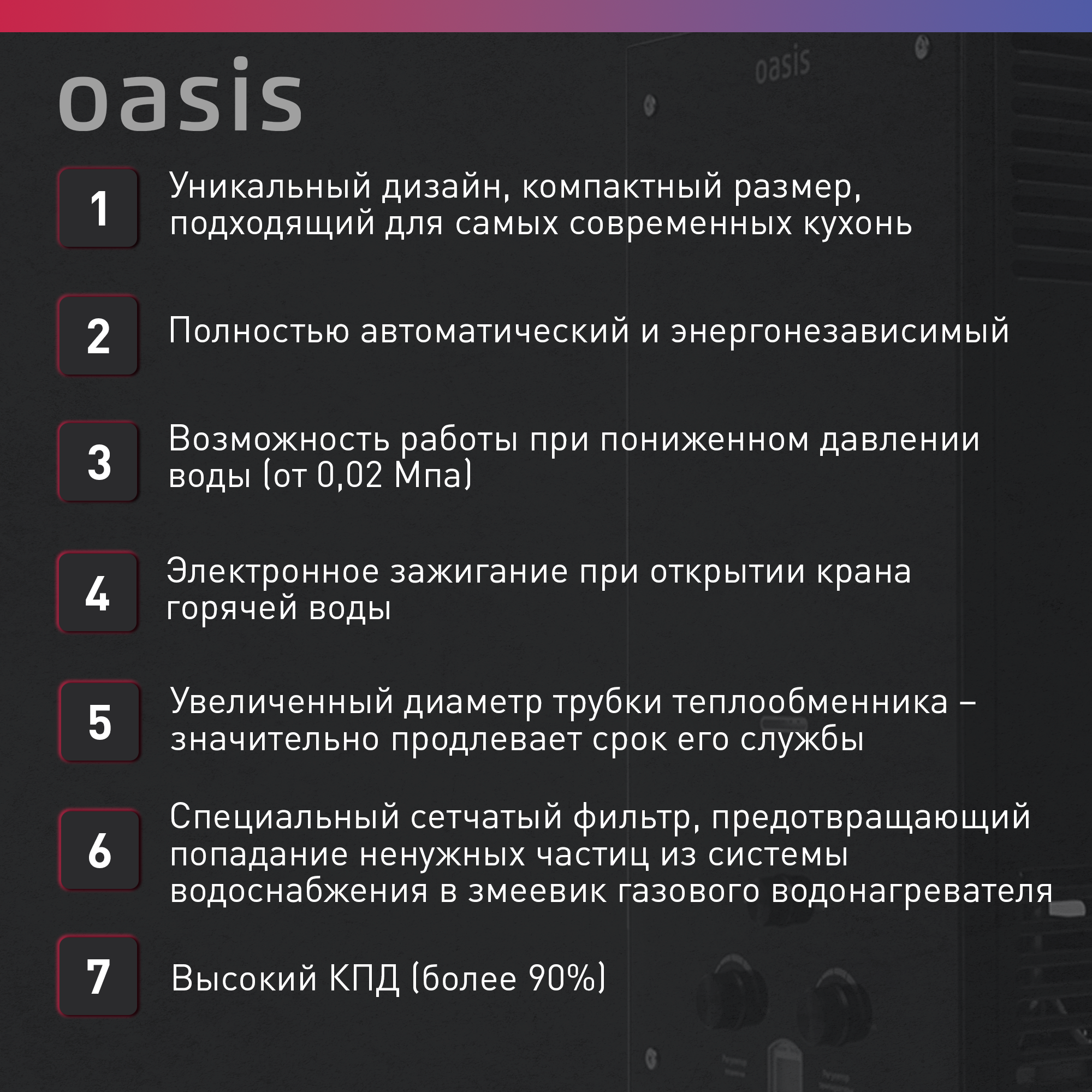 Ниже Вы можете прочитать отзывы на Водонагреватель газовый оазис, проточный серия Glass 20 RG, ознакомится с подробными характеристиками, посмотреть интересные обзоры и фотографии на Водонагреватель газовый оазис, проточный серия Glass 20 RG.