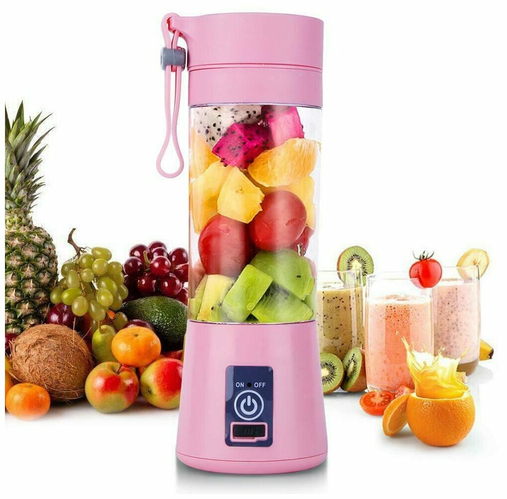 Блендер 350 мл с USB портом Розовый, блендер домашний / измельчитель , кухонная техника / мультиблендер