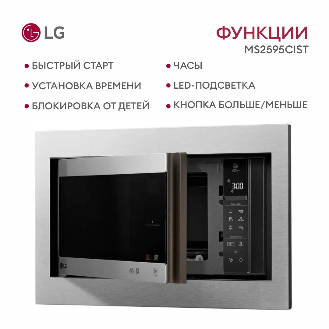 Встраиваемая микроволновая печь LG MS2595CIST интересное: