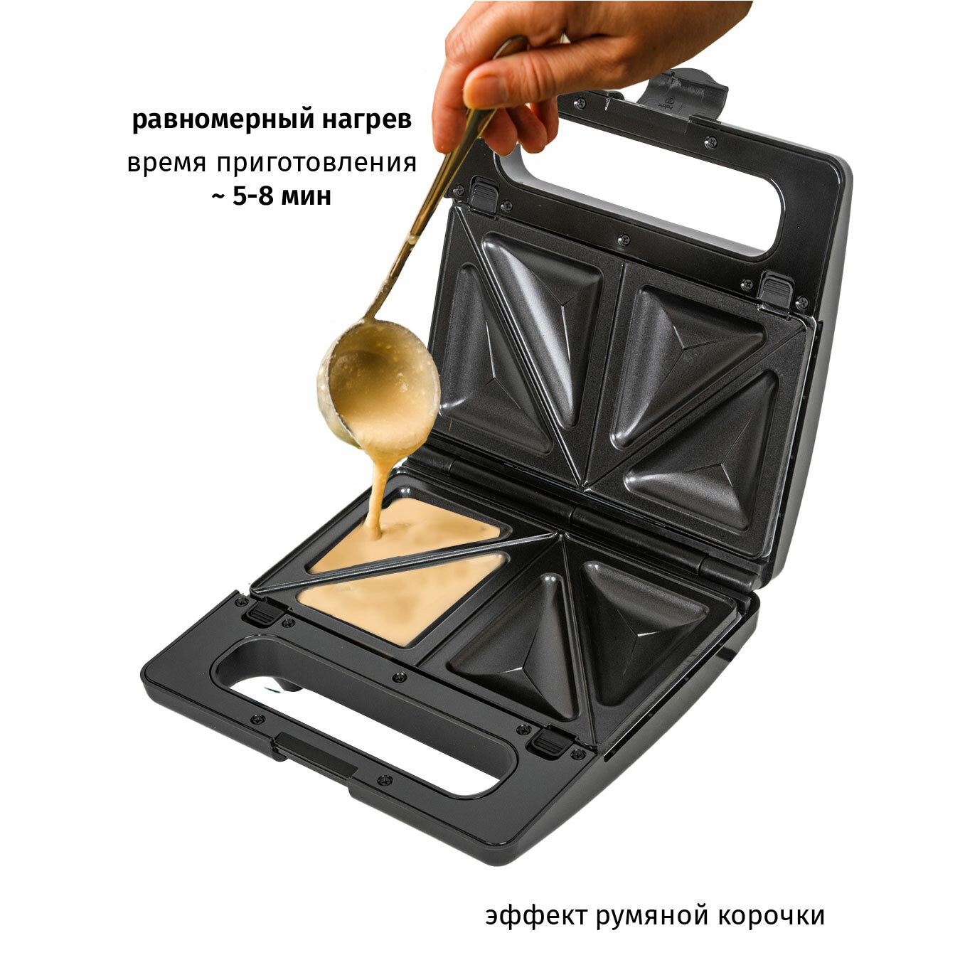 | Плюсы: | Бутерброды делать нормально, вафли приходится ждать мин по 20 и все равно одна сторона белая остается |