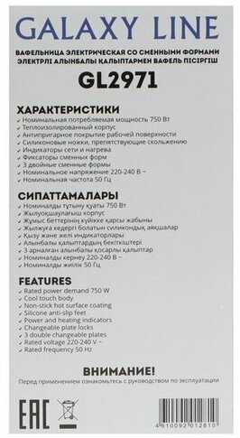 Купить Вафельница электрическая со сменными формами GALAXYLINE GL2971