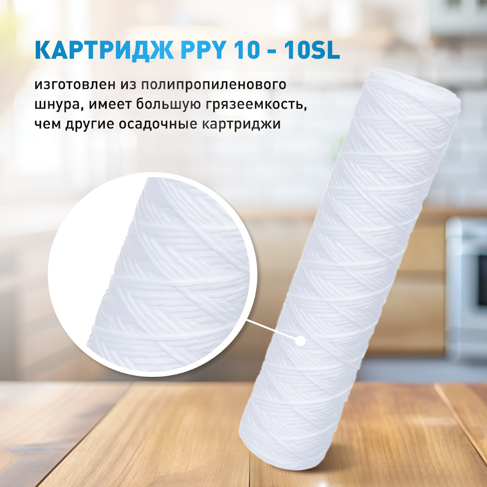 Картридж 10SL, PPY10, механический, 10мкм, нитьевой, ХВС
