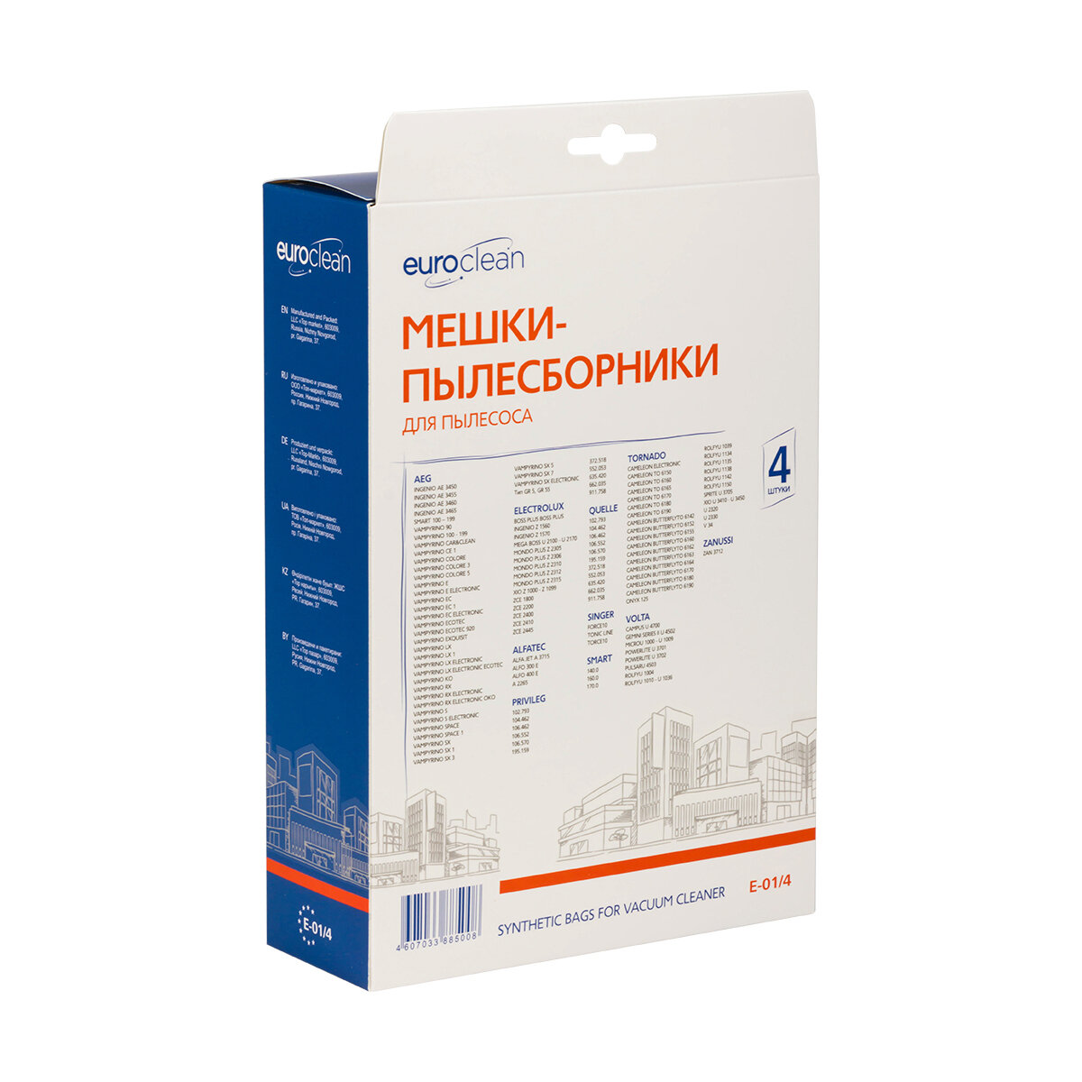 Мешки-пылесборники Euroclean E-01/4 синтетические 4 шт для AEG, ELECTROLUX, ZANUSSI и др.