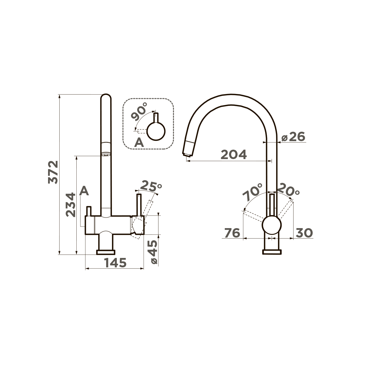 | Высота излива | 234 мм / 372 мм |