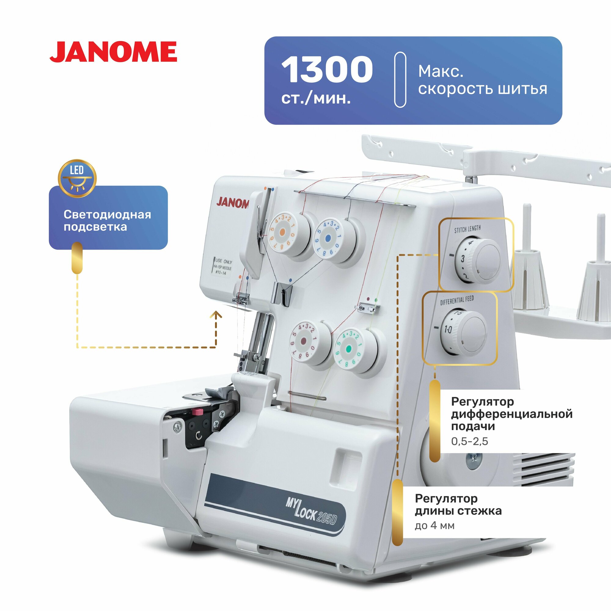 Ниже Вы можете прочитать отзывы на Оверлок Janome MyLock 205D белый, ознакомится с подробными характеристиками, посмотреть интересные обзоры и фотографии на Оверлок Janome MyLock 205D белый.