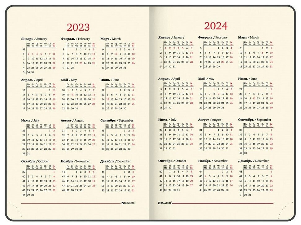 | Плюсы: | Хорошая обложка; полезная информация и мини календари(с праздниками) на 2023 и 2024 в начале; поля для заметок в конце; закладка. |