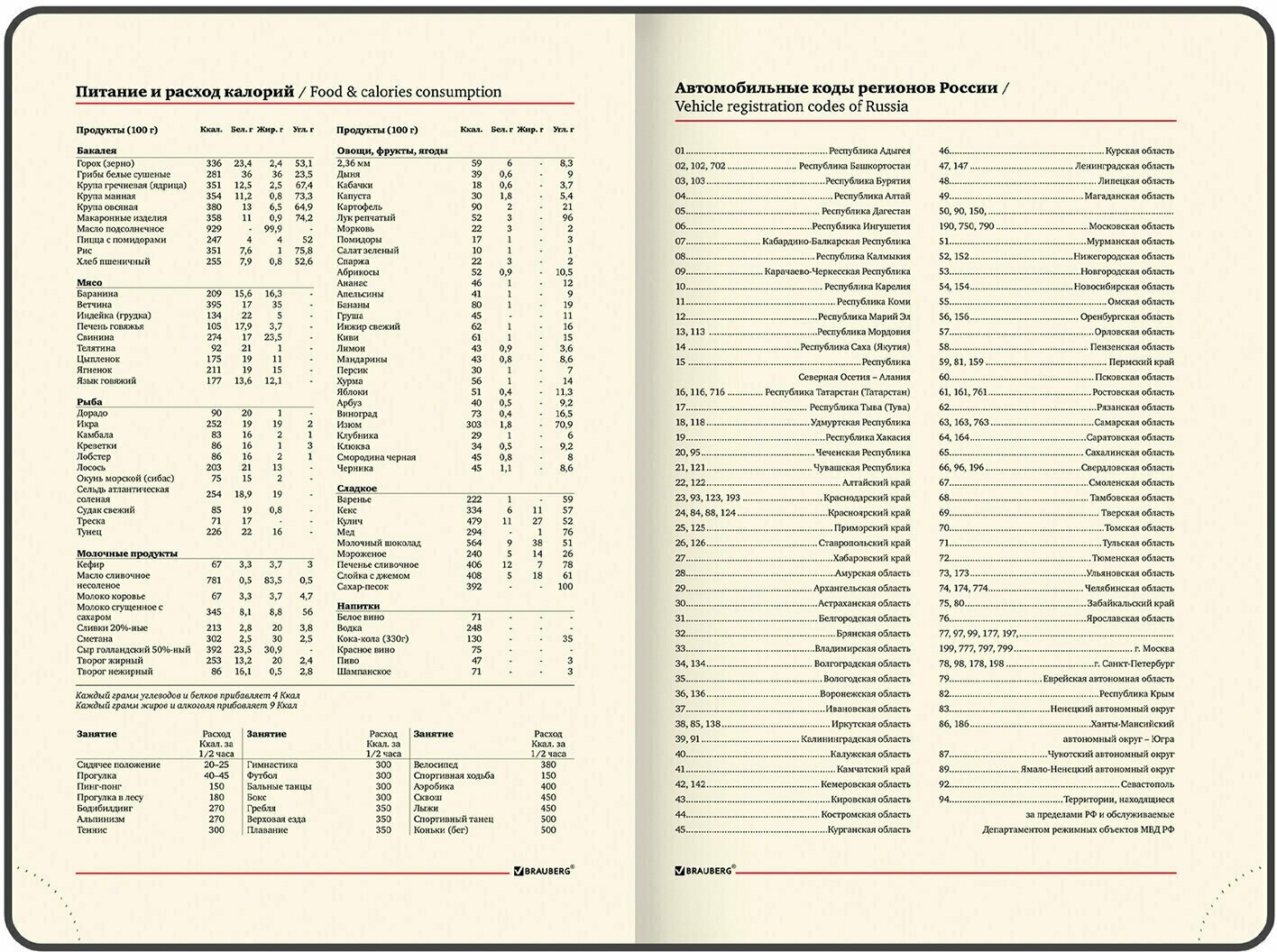 | Особенности | календарь / перфорация уголков / справочная информация / ляссе / закругленные углы |