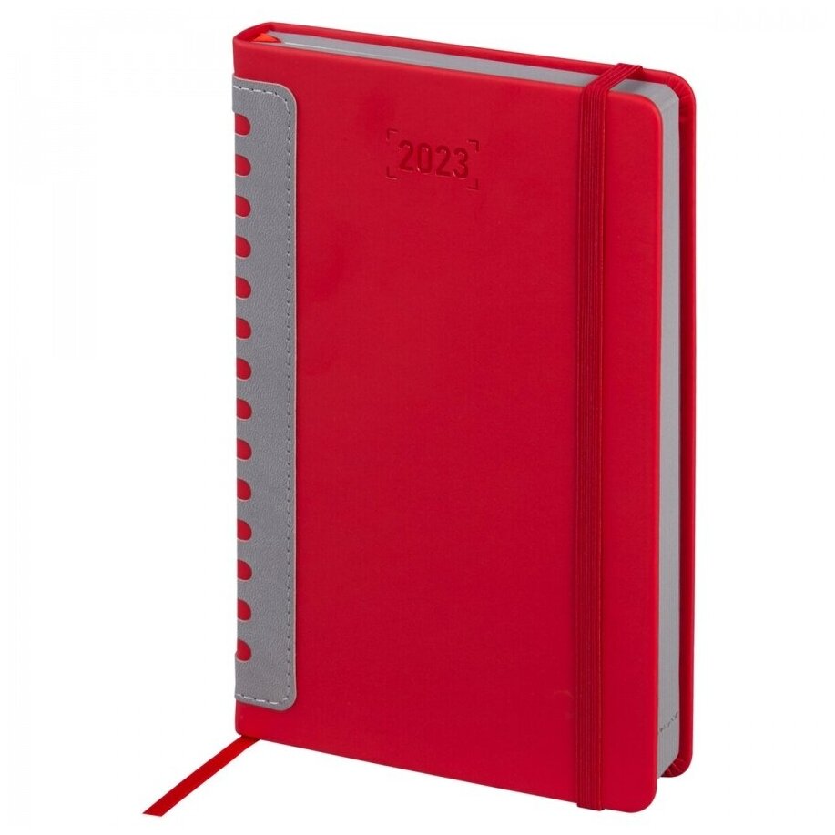 Ежедневник-планер (планинг) / записная книжка / блокнот датированный на 2023 год формата А5 (138x213 мм) Brauberg Original, под кожу, черный/красный