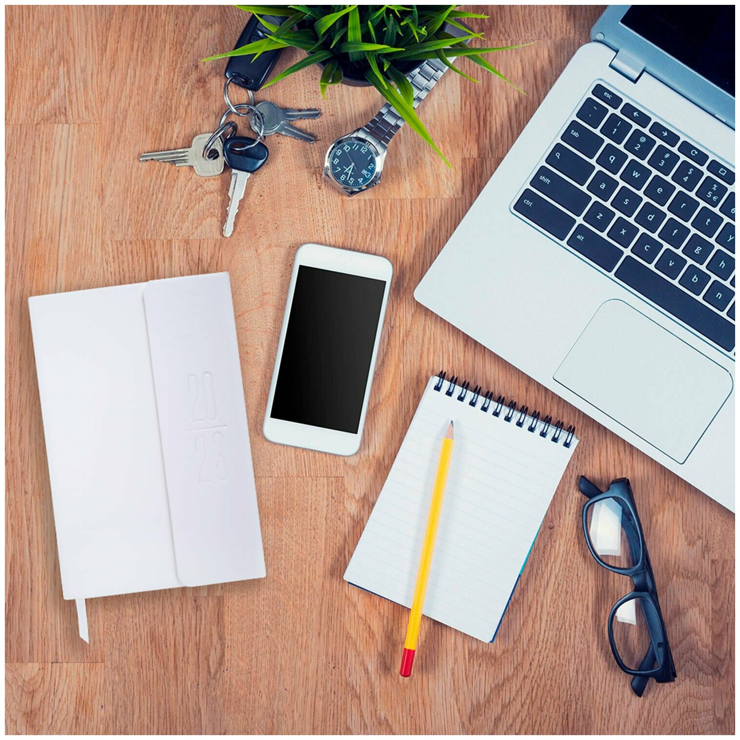 Ежедневник-планер (планинг) / записная книжка / блокнот датированный на 2023 год формата А5 138x213мм Brauberg Towny, под кожу, клапан, белый