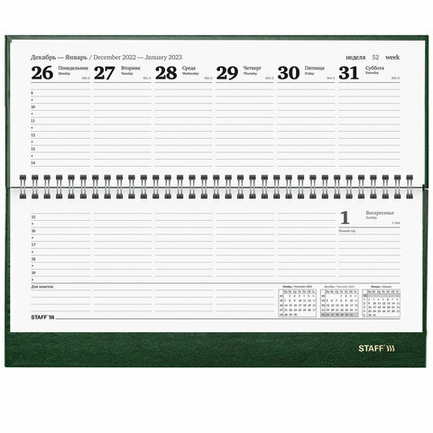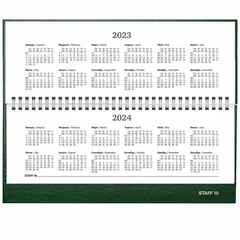 Планинг датированный на 2023 г. 300х130 мм, STAFF, гребень, обложка бумвинил, 64 л., зеленый, 114202, 114202
