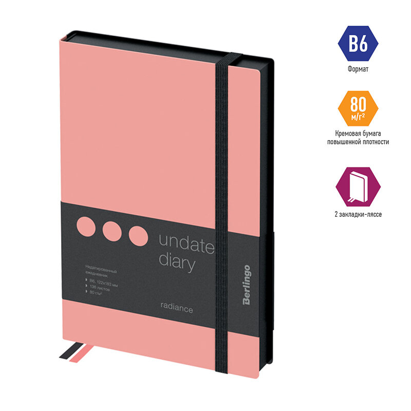 СохранитьЕжедневник недатированный B6 Berlingo "Instinct" (136 листов) обложка кожзам, черный/фламинго, с резинкой (UD0_91601) интересное: