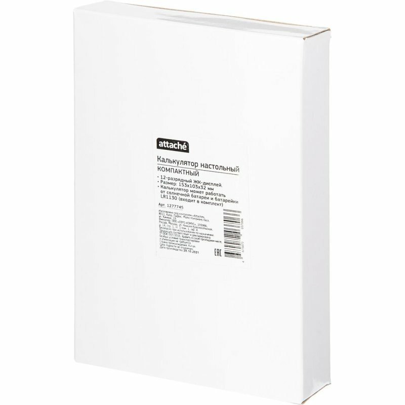 Калькулятор настольный Attache компактный, 12-ти разрядный, черный