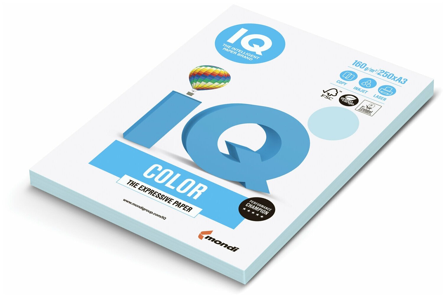 Купить Бумага IQ color, А3, 160 г/м2, 250 л., пастель, голубая, MB30