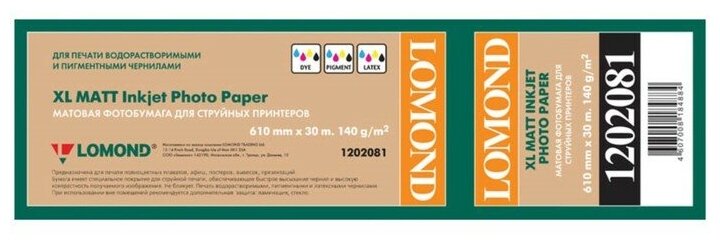 Рулон для плоттера LOMOND (фотобумага), 610 мм х 30 м х втулка 50,8 мм, 140 г/м2, матовое покрытие, LOMOND, 1202081