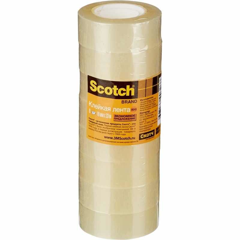 Клейкая лента (скотч) канцелярская 3M Scotch 500 (19мм x 33м, 45мкм, прозрачная, втулка пластик) 8шт. (500-1933) интересное: