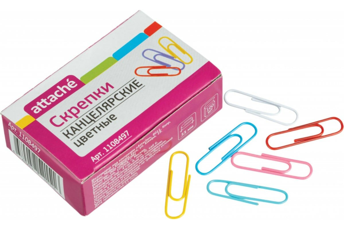 Скрепки Attache цветные, 33 мм, полимер, 100 шт.в карт.уп