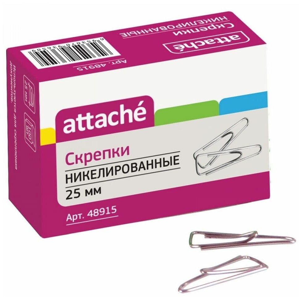 Скрепки Attache металлические никелированные 25 мм (100 штук в упаковке), 48915