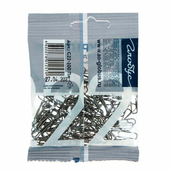 Скрепки 22 мм. Globus 100шт. в пакете. Флоу-пак. С22-100 Пл с европод. . Комплект из 10 упаковок скрепок (100 шт в каждой)