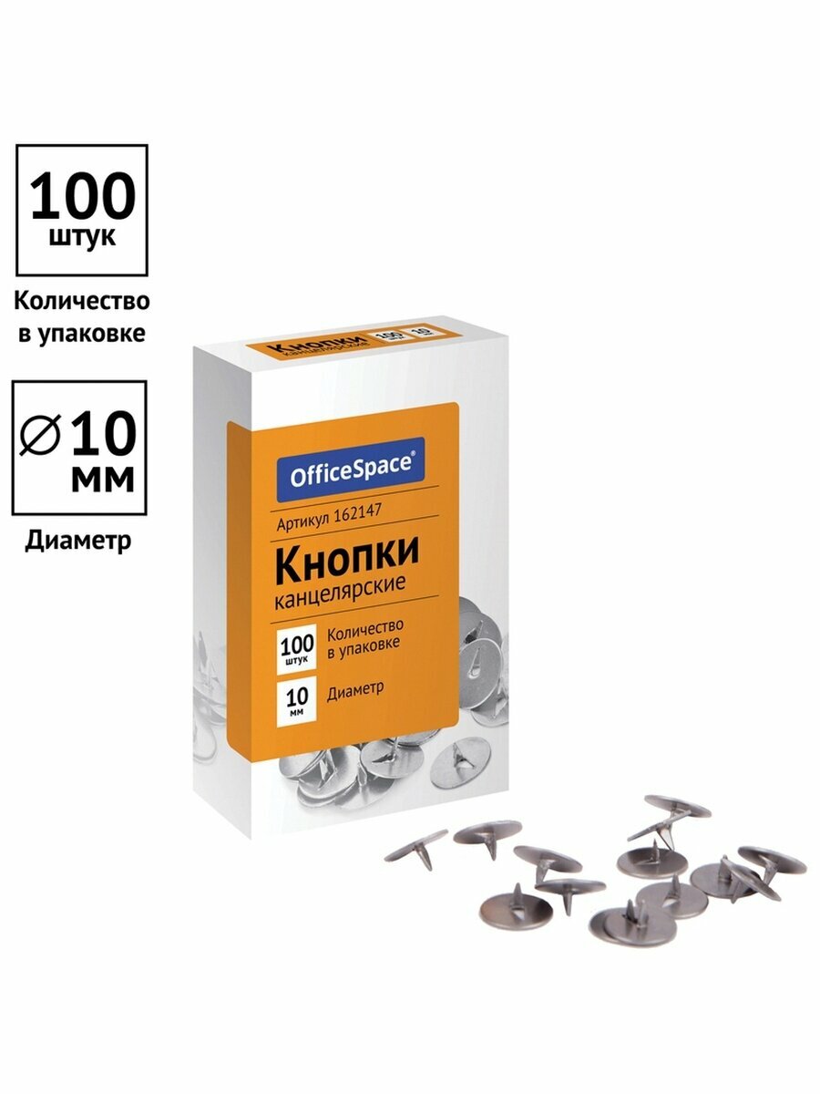Кнопки канцелярские OfficeSpace, d=10мм, металлические, 100шт., картонная упаковка (162147)