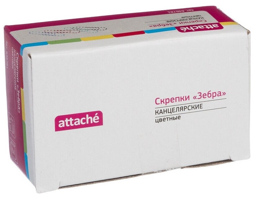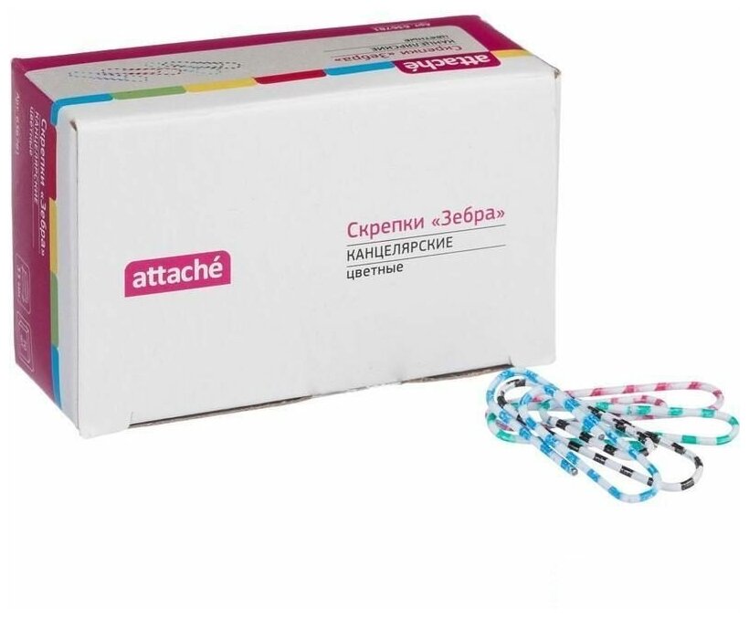 Скрепки Зебра Attache, полимер, 33 мм., 70 шт.в карт/уп