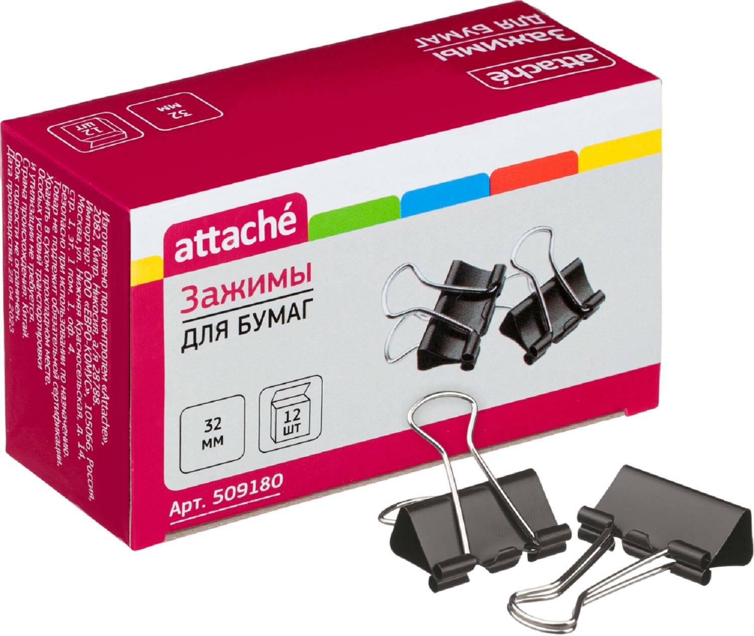 Зажимы для бумаг Attache 32мм 12шт/уп , в картонной коробке