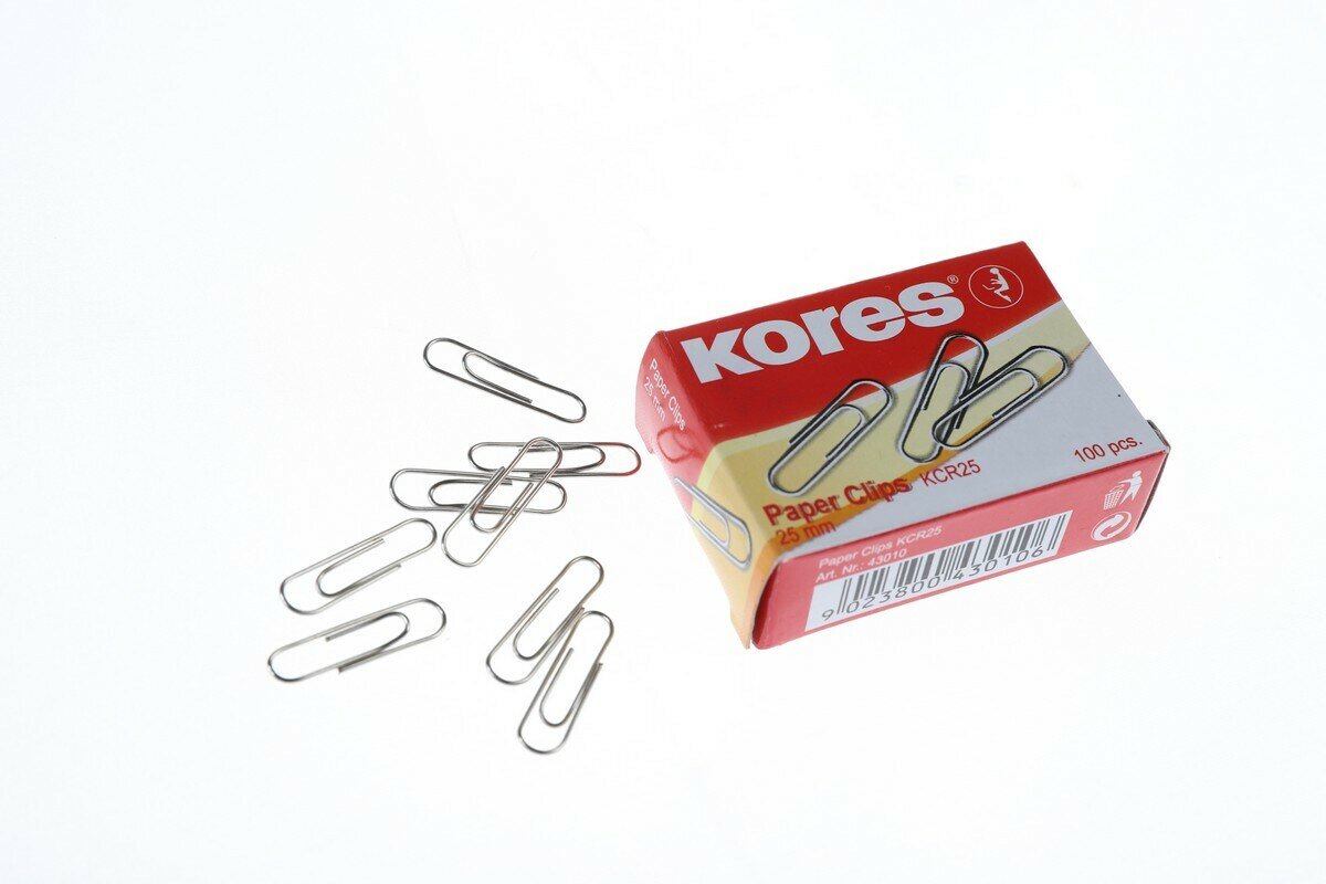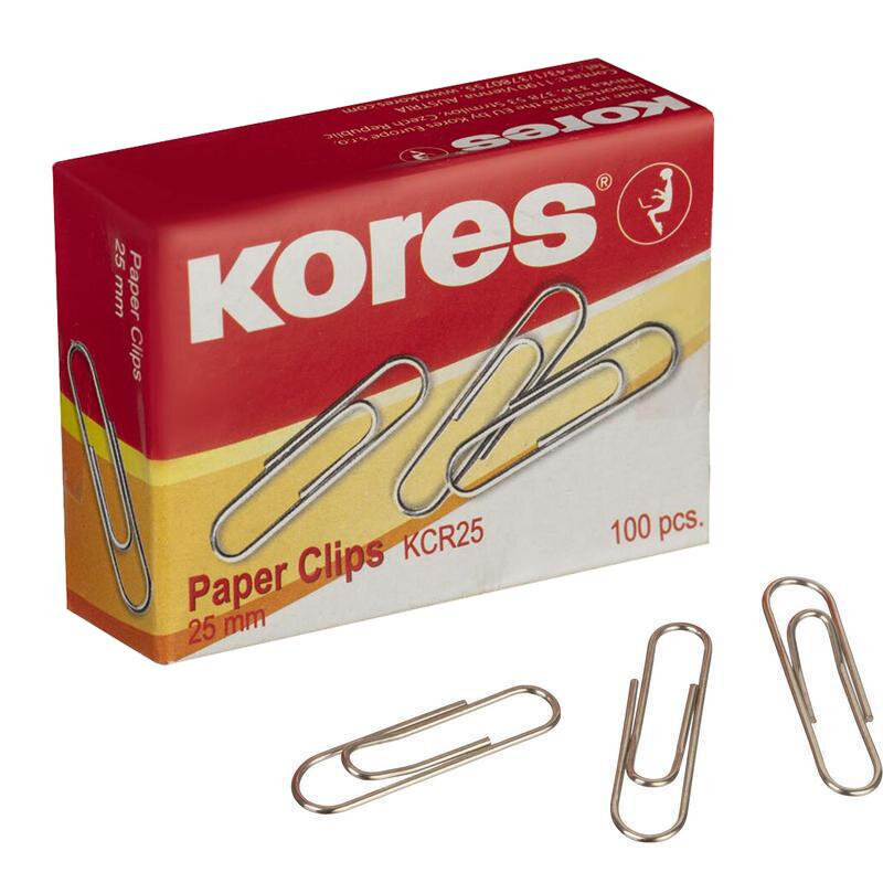 Скрепки Kores металлические никелированные 25 мм (100 штук в упаковке), 65494