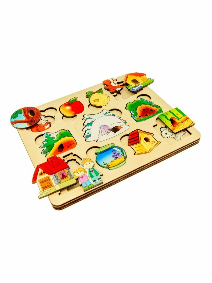 Развивающая доска, пазл, рамка-вкладыш для малышей "Где чей домик?", 22 детали