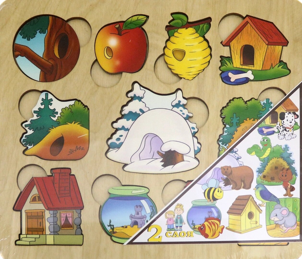 Пазл-рамка для малышей "Где чей домик?" (дерево, 2 слоя) Нескучные Игры 7993 Р95158