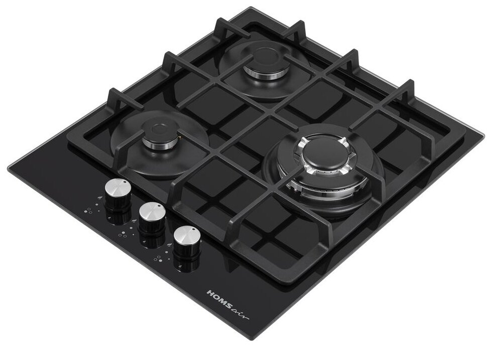 Купить Встраиваемая газовая панель HOMSair/ газ, механическое управление, 3 конфорки, газ контроль, автоподжиг, черный цвет