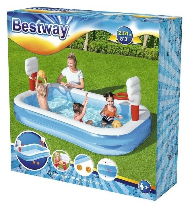 Бассейн Bestway 54122 Игровой бассейн Баскетбол + 2 мяча 251 х 168 х 102 см, 636 л, .