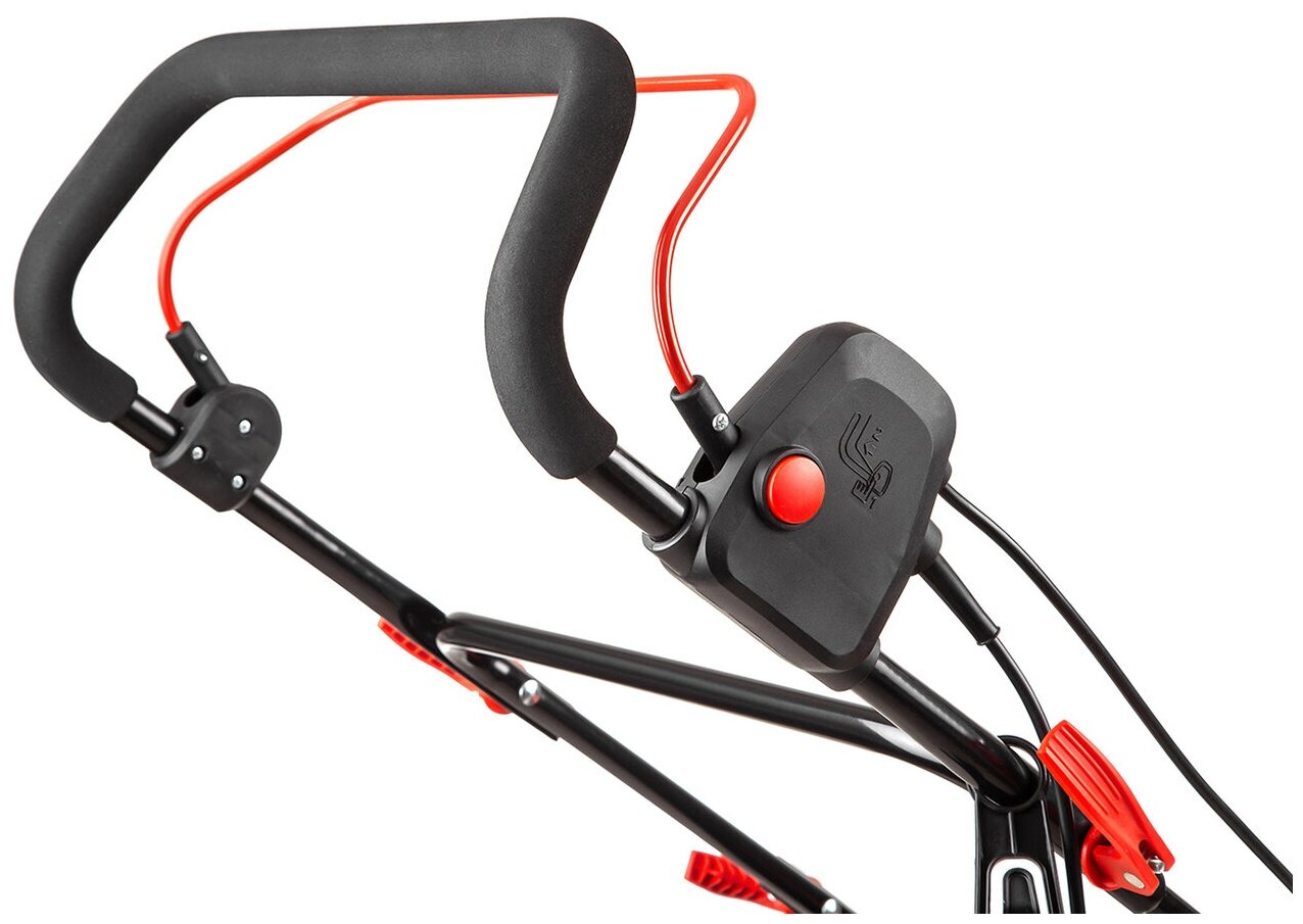 | Плюсы: | Лёгкий. Выделяющийся красный цвет ( тяжело потерять на зелёной траве). Мощность 2000 Вт. Относительно не дорогой, но одинаковая рекомендованная минимальная цена всё портит. 2 «шнека» в комплекте. Относительно не шумный ( указано 108 дцб). Не надо прилагать усилий при работе. Он сам тебя тянет как бы за собой, а ты направление даёшь. По началу я думал что это достоинство, но читаем дальше. В коробке лежит даже без защитного полиэтилена ( бережём экологию наверно). Собирается легко по картинке на фотографии коробки, даже инструкция не нужна. |