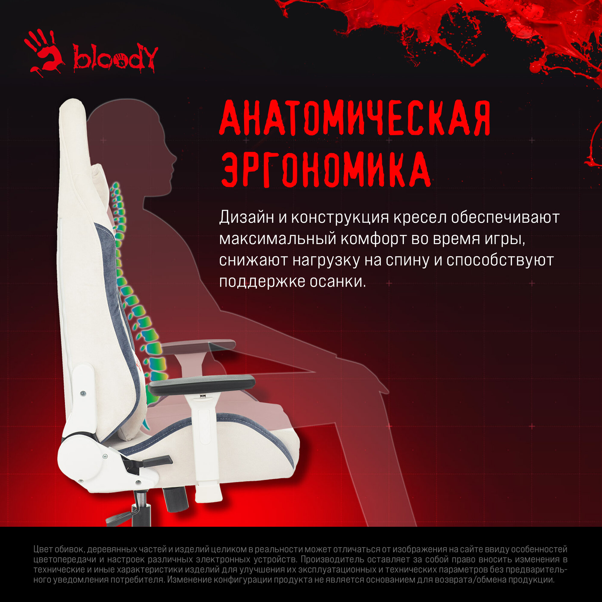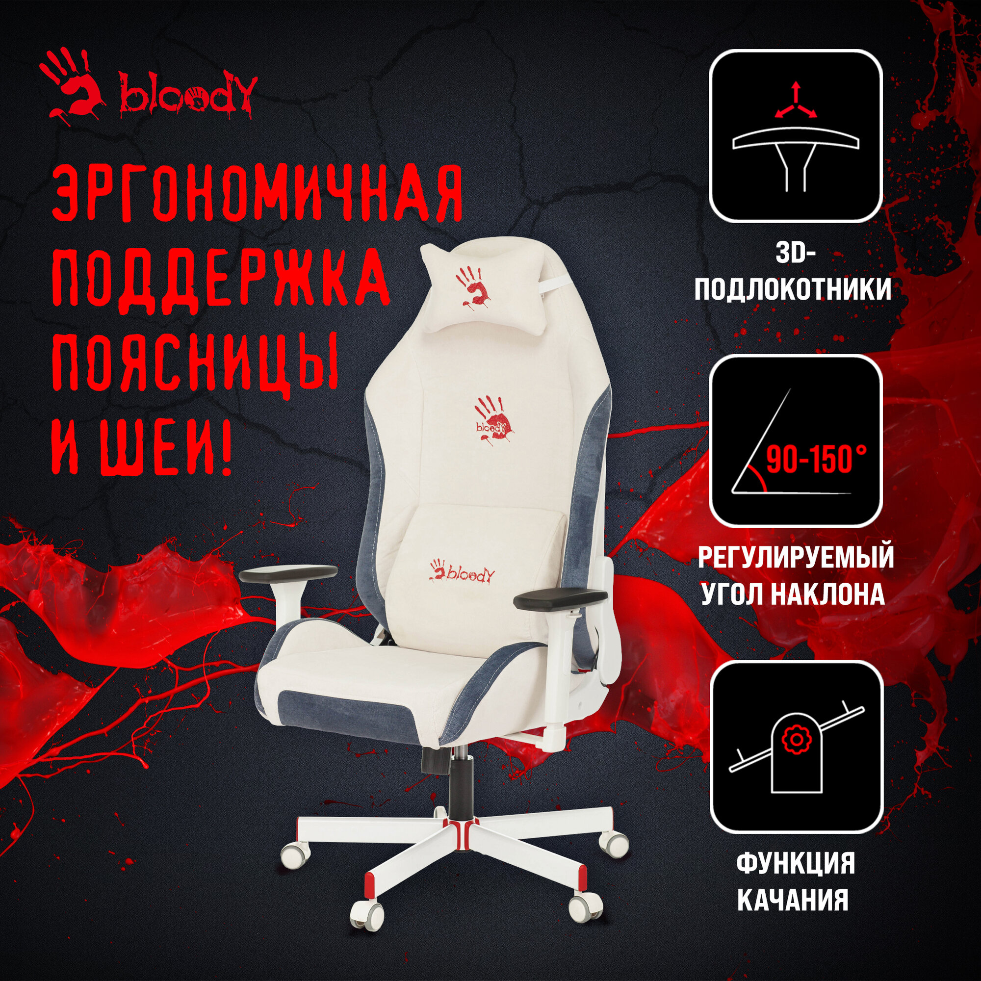 Кресло игровое A4Tech Bloody GC-330, обивка: ткань, цвет: белый