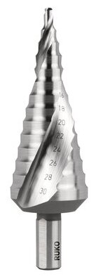 RUKO RK-101052 Сверло ступенчатое 4,0-30,0 мм, 14 ступеней, HSS, 118°, со спиральными стружечными канавками