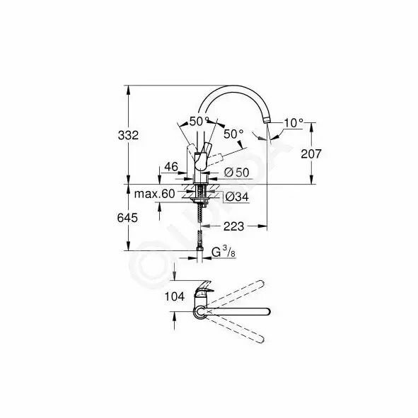 Смеситель для кухни Grohe BauCurve, арт. 31536001, поворотный излив, минимальное давление 1,0 бар