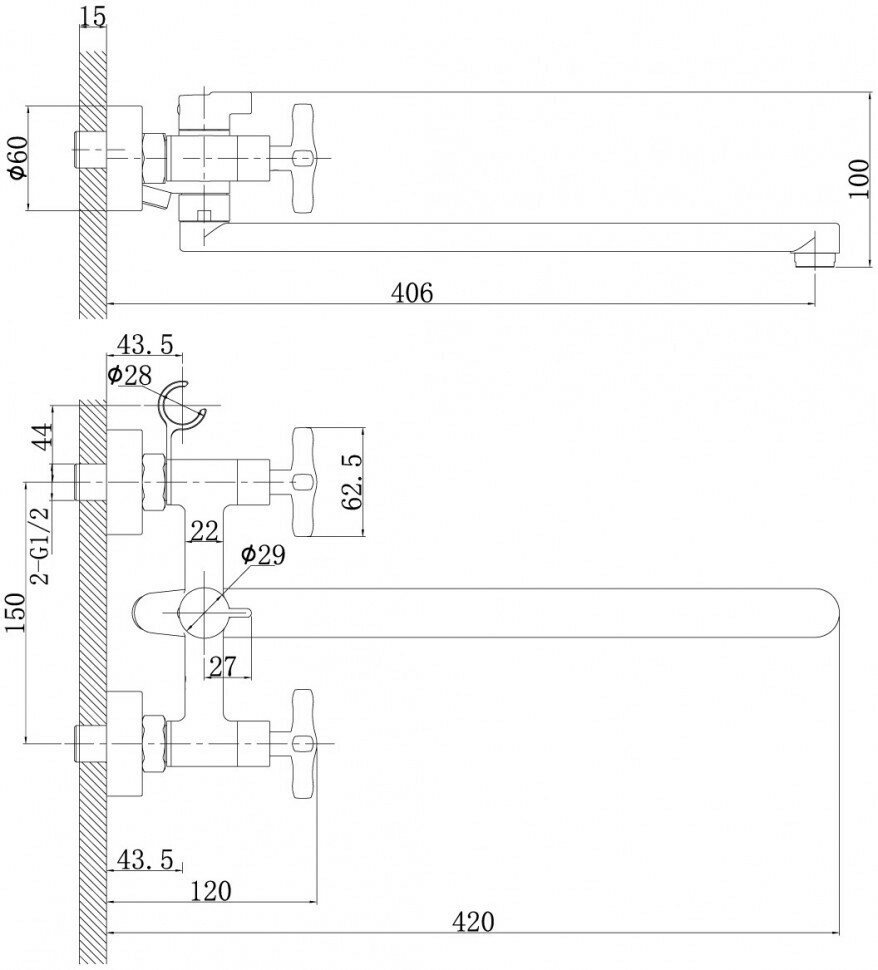 | Длина излива | 406 мм |