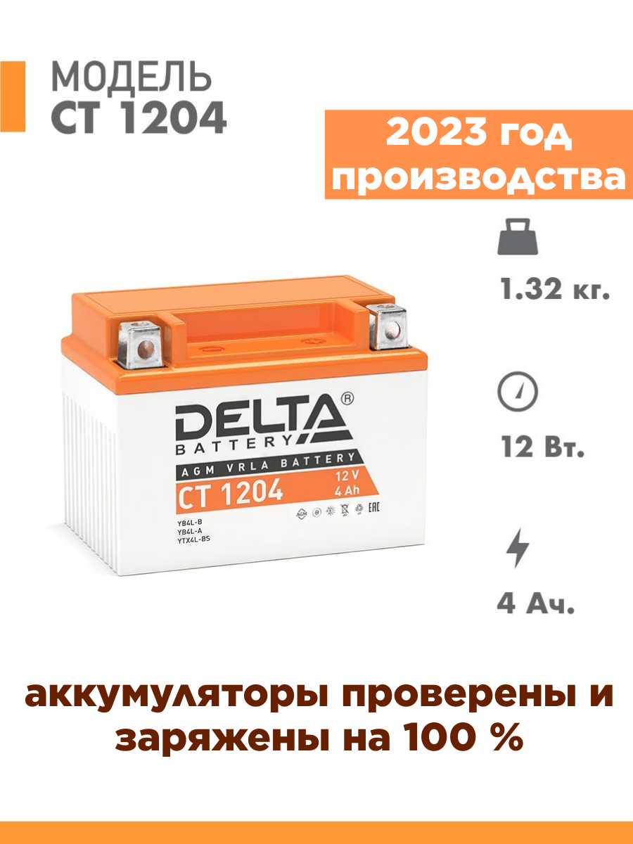 Delta CT 1204 Аккумуляторная батарея для мототехники (YB4L-B, YB4L-A, YTX4L-BS)